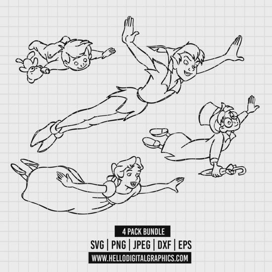 COD1923 - Peter pan's word pack bundle, Disney clipart Svg, Png, Eps, Dxf, Jpeg, vector.