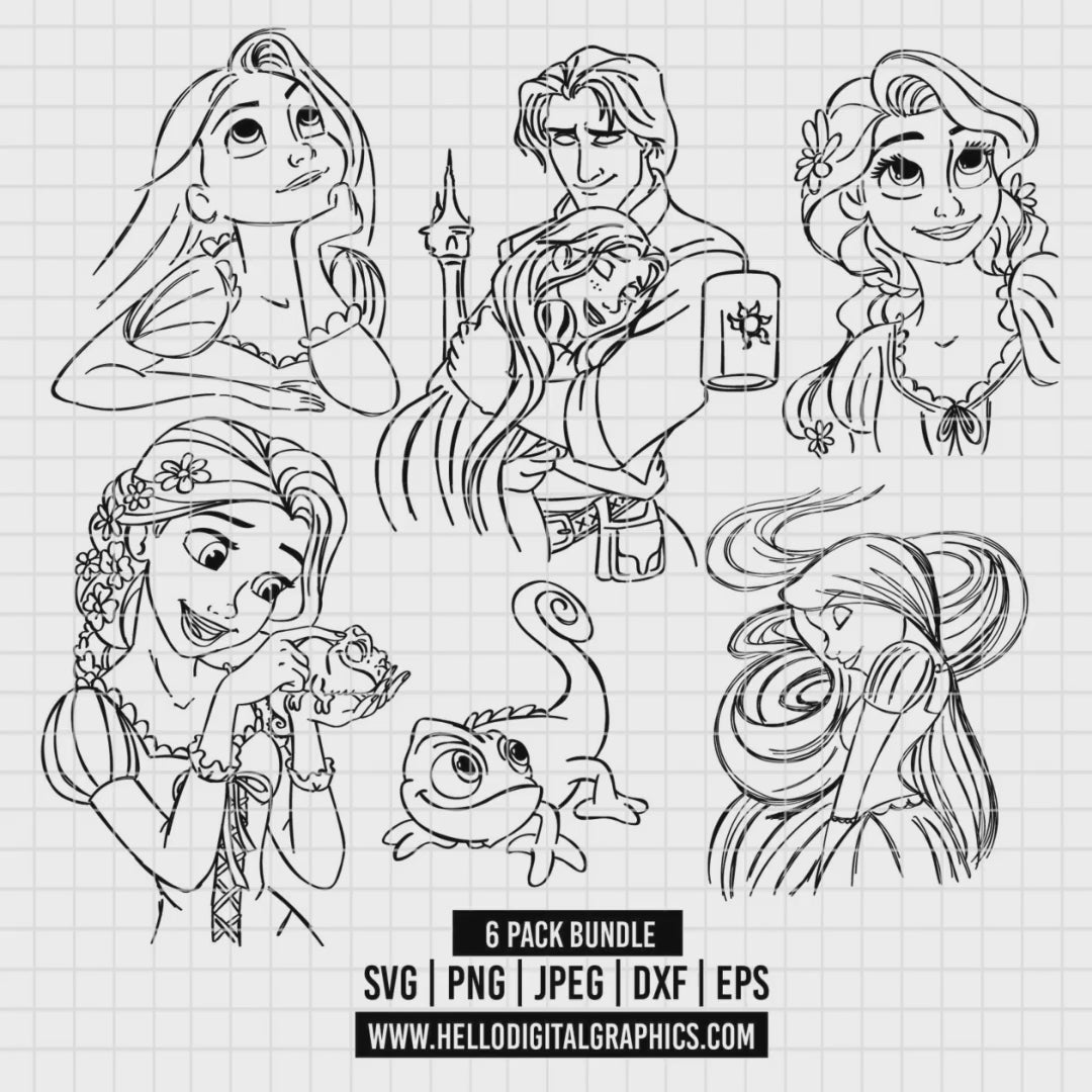 COD2744 - Tangled pack bundle, Disney princess clipart Svg, Png, Eps, Dxf, Jpeg, vector.